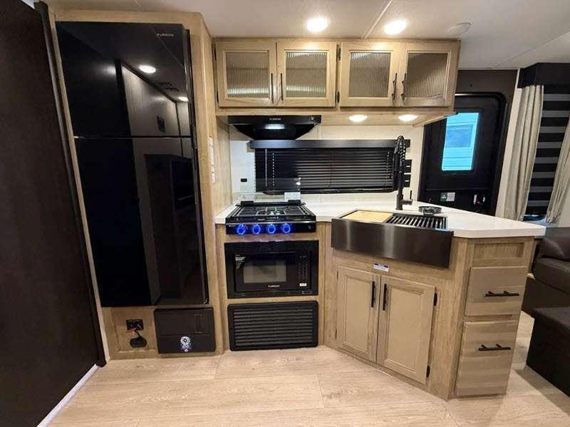 Sleeps 7 Slides 1 Length 24 ft 3 in Ext Width 8 ft Ext Height 10 ft 8 in Int Height 0 ft Hitch Weight 615 lbs GVWR 7615 lbs Dry Weight 5312 lbs Cargo Capacity 2303 lbs Fresh Water Capacity 52 gals Grey Water Capacity 38 gals Black Water Capacity 38 gals Furnace BTU 20000 btu Number Of Bunks 1 Available Beds Two Queen Refrigerator Type 12V Cooktop Burners 3 Number of Awnings 1 Water Heater Type Tankless AC BTU 15000 btu Cargo Deck Size 0 ft Awning Info 15' Full Length Power w/LED Light Strip Axle Count 2 Shower Type Tub/Shower Combo Solar Wattage 200 watts Similar Floorplans